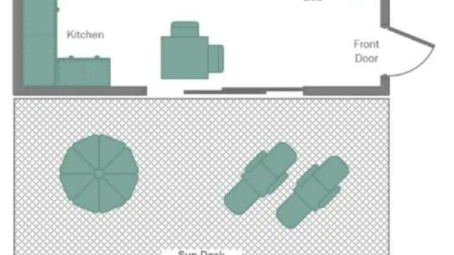 - Kitchenette with table, coffee maker, stove with 2 hotplates,