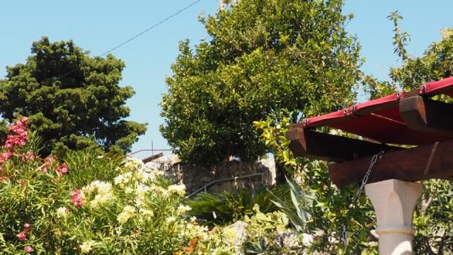 The apartment "Rosmarinus" is situated above the first apartment. It has a small terrace protected from the wind and a garden with a lawn.